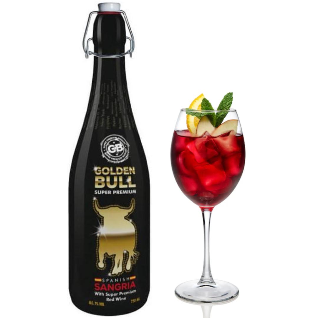 Golden Bull Sangría, el Vino tinto junto a una delicada burbuja, no deja indiferente a los paladares más exquisitos, que podrán disfrutar de la suve y relajada maceración, tiempo que se le da a la fruta que transmita sus sabores al vino.